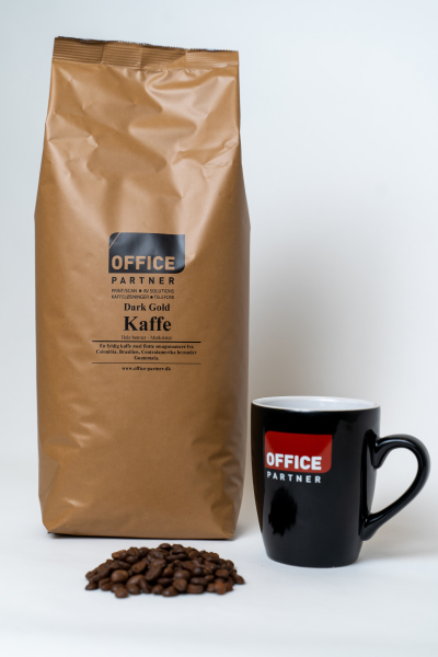 Office Partner Dark Gold, hele bønner er en lækker fyldig kaffe, med smagsnuancer fra Colombia, Brasilien, Centralamerika herunder Guatemala.