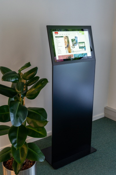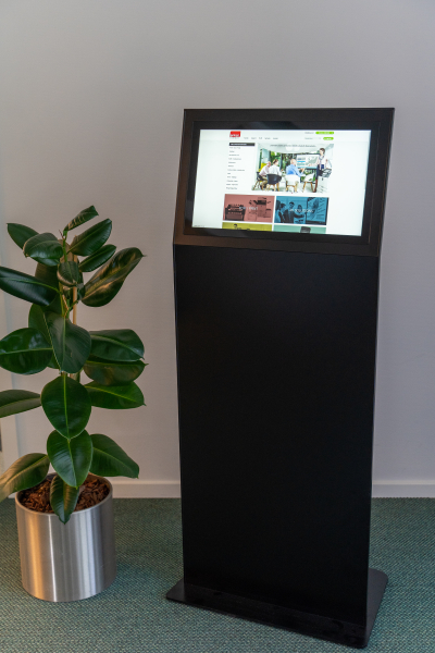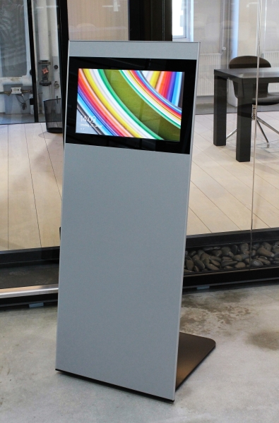 DigiBend infostander kan bygges op efter behov og ønsker. DigiBend kan benytte LAN og WiFI løsning.DigiBend er med indbygget touchskærm.