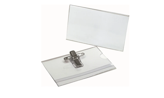 Visitkortholdere er perfekte at bruge som kongresmærke. De er i klar plast med sikkerhedsnål og klemme. Derudover medfølger 50 stk. papirindlæg, som er lige til at printe. Holderne har mål, der passer til visitkort og du kan vælge at sætte mærket fast med endten sikkerhedsnålen eller klemmen.