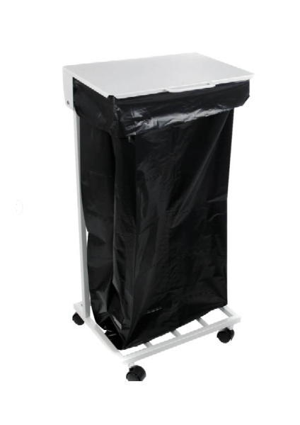 Dette stativ har et enkelt design og er velegnet til at have stående på lageret, i kantinekøkkenet eller andre steder, hvor der er meget affald og det skal være nemt at tømme og skifte affaldssækkene.