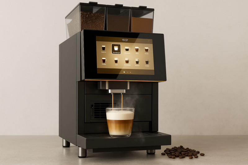 CoffeeBar Pro er en topklasse maskine, som leverer varme drikke i topkvalitet. Maskinen leveres med 1 bønnebeholder samt 2 instantbeholder til bl.a mælk og kakao. Maskinen er ekstrem lydløs og nem at arbejde med.