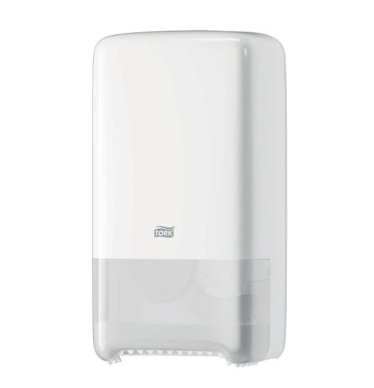 Tork Twin Mid-size T6 toiletpapirdispenser i farven hvid af materialet plast.