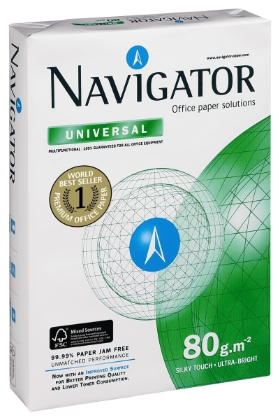 Navigator er et hvidt, træfrit ubestrøget kvalitetspapir. Kan bruges i alle kontorets maskiner.
