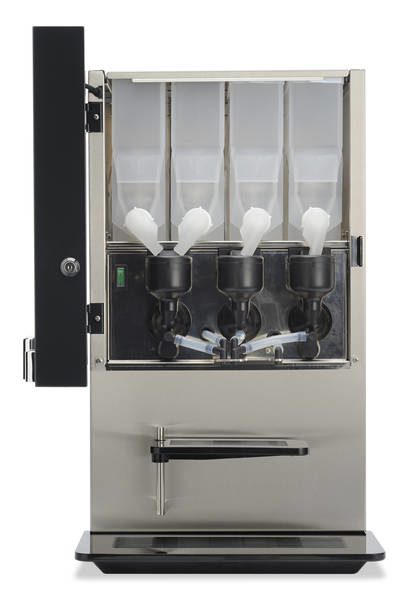 Maskinen kan tilpasses meget jeres præcise behov. Den fåes i 3 forskellige nuancer, rød, sort og hvid. Der kan isættes forskellige størrelser beholdere og antal alt efter behov af drikke.
