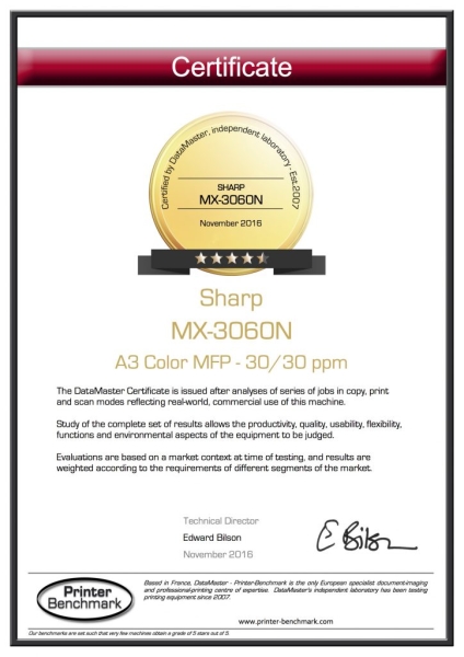 Farveenheden MX-4071N A3 er en udvidet løsning med central MFP, som optimerer arbejdsgruppeaktivitet når som helst og hvor som helst. Én login-cloud-opkobling, mobil opkobling via WiFi, direkte USB-udskrivning af MS Office-filer og OCR til scanning til søgbare PDF-filer & scanning til Office sørger for fleksibelt workflow. Print Release-funktionen, der er standard, gør brugeren i stand til at sende og lagre dokumenter til en main-MFP, der fungerer som server. Udskriftsjob kan derefter udsendes sikkert ved op til fem opkoblede, netværksklare enheder.