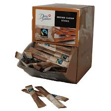 Bæredygtige rørsukker sticks. Hygiejnisk og let. Leveres i praktisk borddisplay. Fairtrade certificeret.