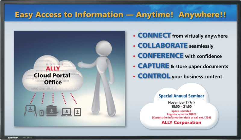 Sharp have created a new series of robust and easy to use professional monitors that are ideal for a wide range of applications including retail shops, hospitality, reception areas, lobbies and other corporate and public spaces. This brand new PN-Y 55” is designed for prolonged display application and is supported by an embedded USB media player – no need for extra hardware or software –thus; making displaying your messages and videos as easy as 1, 2, 3. As a hassle free solution with excellent image and sound quality, the PN-Y556 sets a new standard for easy and reliable display signage used anytime and anywhere.
